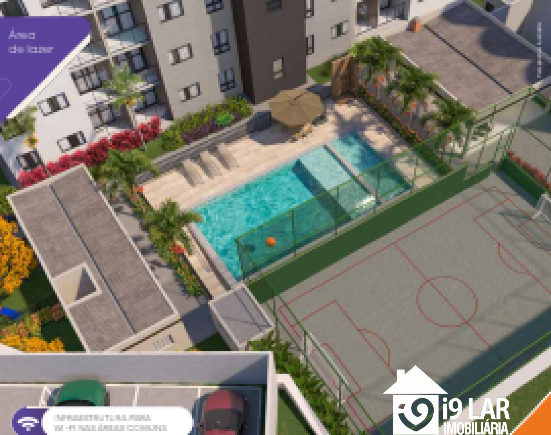 O condomínio conta com estrutura completa de lazer, incluindo piscina, salão de festas, churrasqueira, quadra esportiva, parque infantil e áreas de convivência para toda a família.